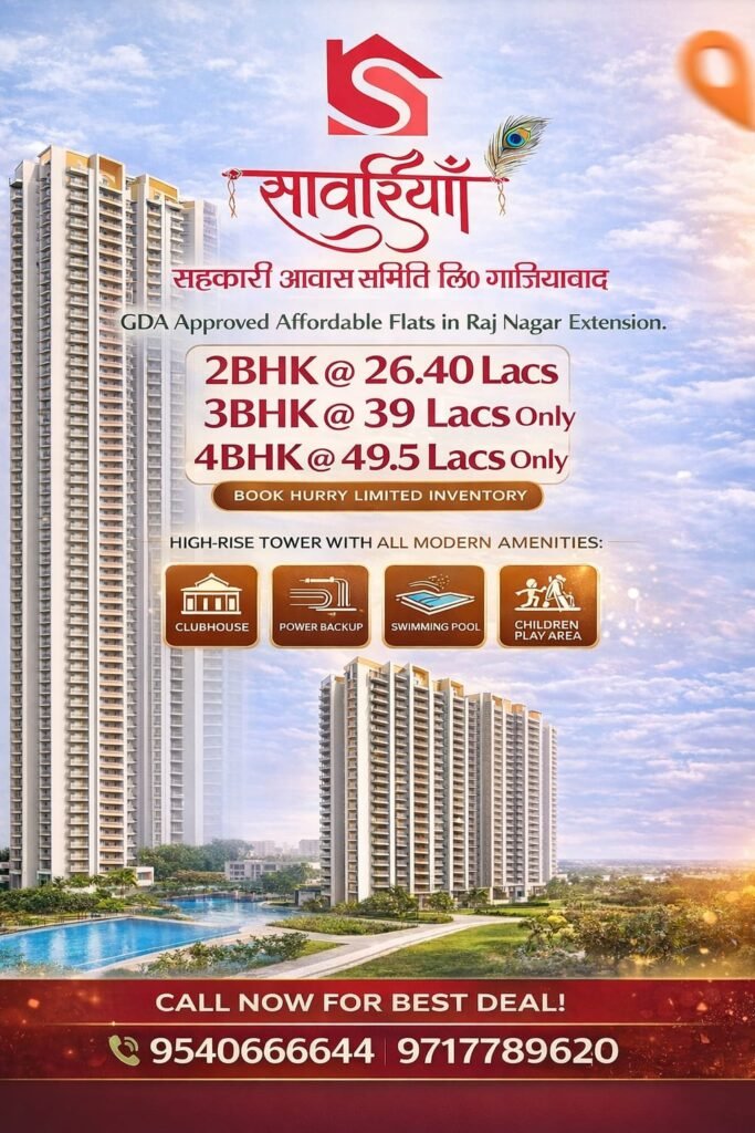 Buy premium 2BHK, 3BHK, and 4BHK flats in Raj Nagar Extension with Archie Homes – a trusted choice for secure and profitable property investment.